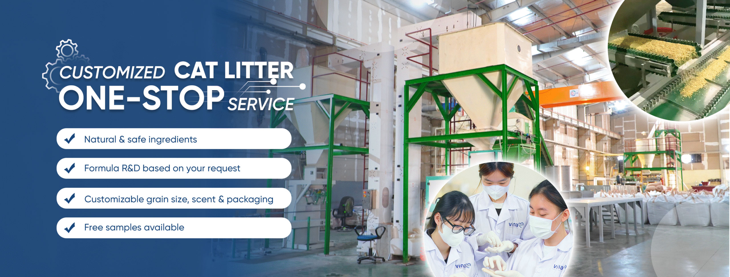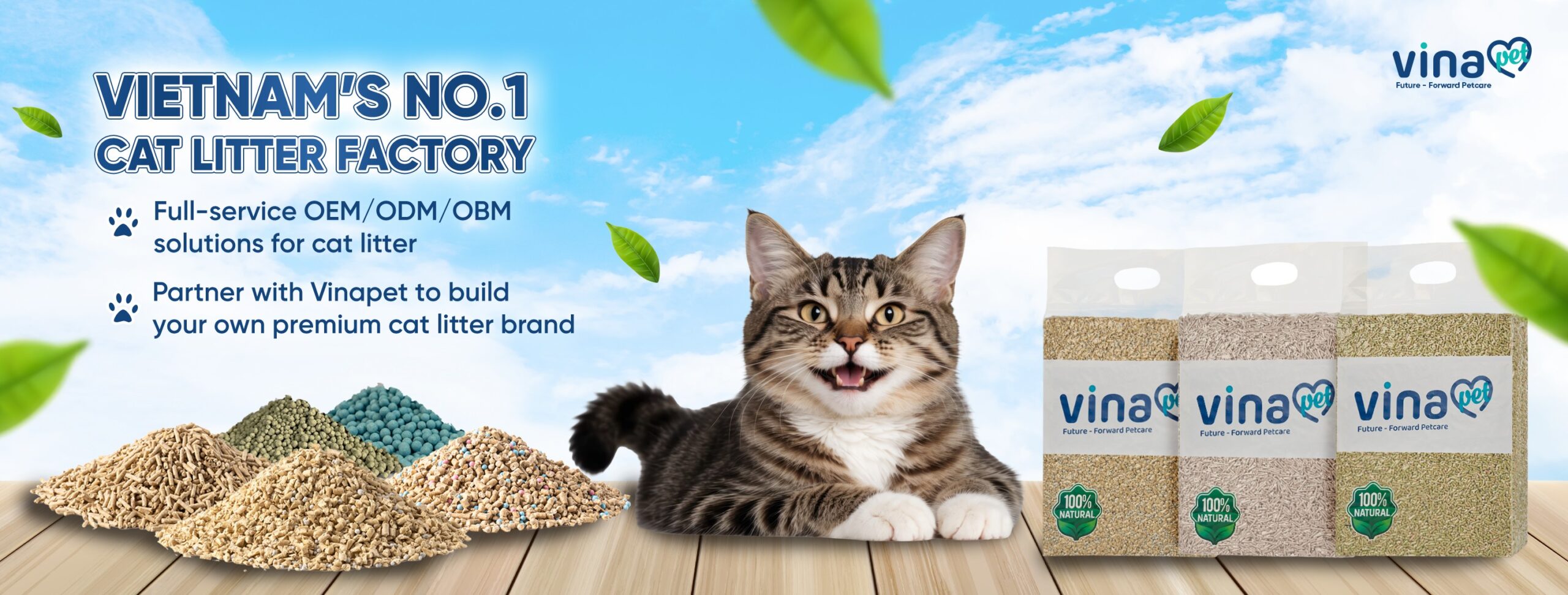 Với vai trò là đối tác chiến lược, Vinapet cung cấp dịch vụ OEM/ODM/OBM linh hoạt cho các đối tác trong nước và xuất khẩu. Chúng tôi đảm bảo nguồn cung ổn định, giá cả cạnh tranh và sẵn sàng đồng hành cùng đối tác để phát triển các công thức cát mèo độc quyền và mở rộng thị trường bền vững.