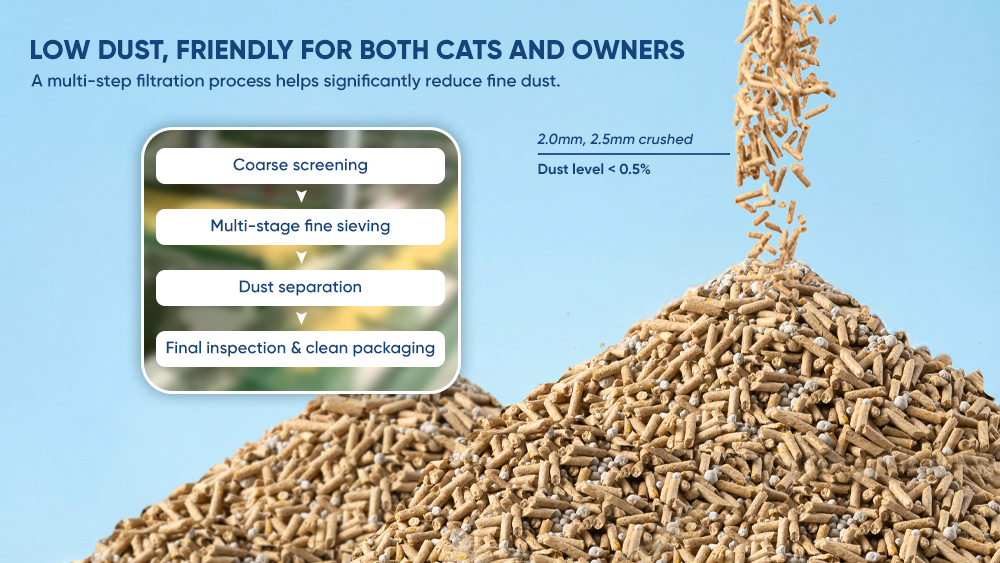 Cát Tre Mix Bentonite Vinapet là công thức được tối ưu dành cho các đối tác ODM phân khúc giá tốt, muốn ra mắt dòng cát thực vật nhưng vẫn đảm bảo hiệu suất cao, dễ dùng và phù hợp thị trường đại chúng. Đây chính là lõi sản phẩm đã cung ứng cho Cát mèo Cung Đình. Sự kết hợp giữa bột tre (nguồn nguyên liệu tái tạo từ phụ phẩm nông nghiệp) và Bentonite tạo nên cấu trúc hạt mềm – dẻo – chắc chắn.